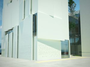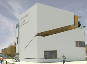 Impressie van de nieuwe nog te realiseren gebouw van de Bibliotheek in Tel-Aviv:
