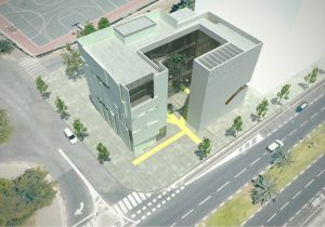 Impressie van de nieuwe nog te realiseren gebouw van de Bibliotheek in Tel-Aviv: